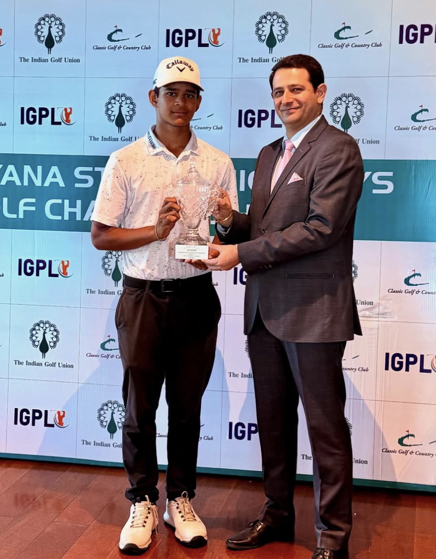 Gurgaon’s Kartik Singh, the country’s most promising young male golfer, delivered an emphatic 12-stroke victory at the IGU Haryana State Junior Boys, held at ITC Classic Golf & Country Club in Gurgaon. Kartik posted rounds of 69, 70, 71, and signed off with a blistering 8-under 64 for a total of 14-under 274. His performance solidifies the fact that he has outgrown Indian junior golf.
