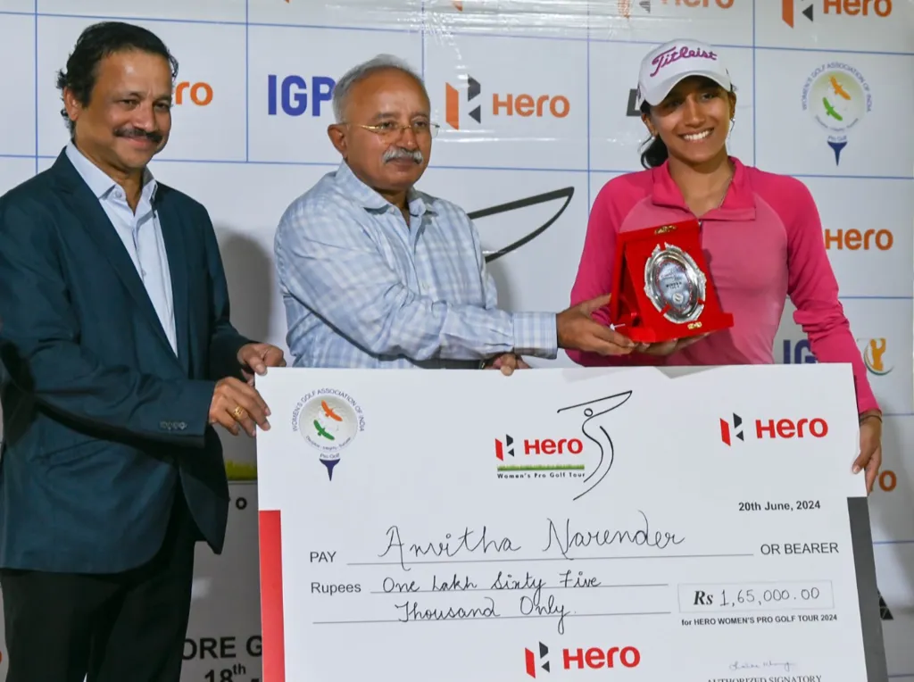 19-year-old Anvitha Narender, originally from New Jersey and now a Bangalore resident, turned pro this June, winning in her 2nd pro start last week at Bangalore Golf Club with rounds of 69-65-68 for a remarkable seven-shot victory.
